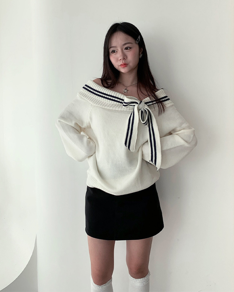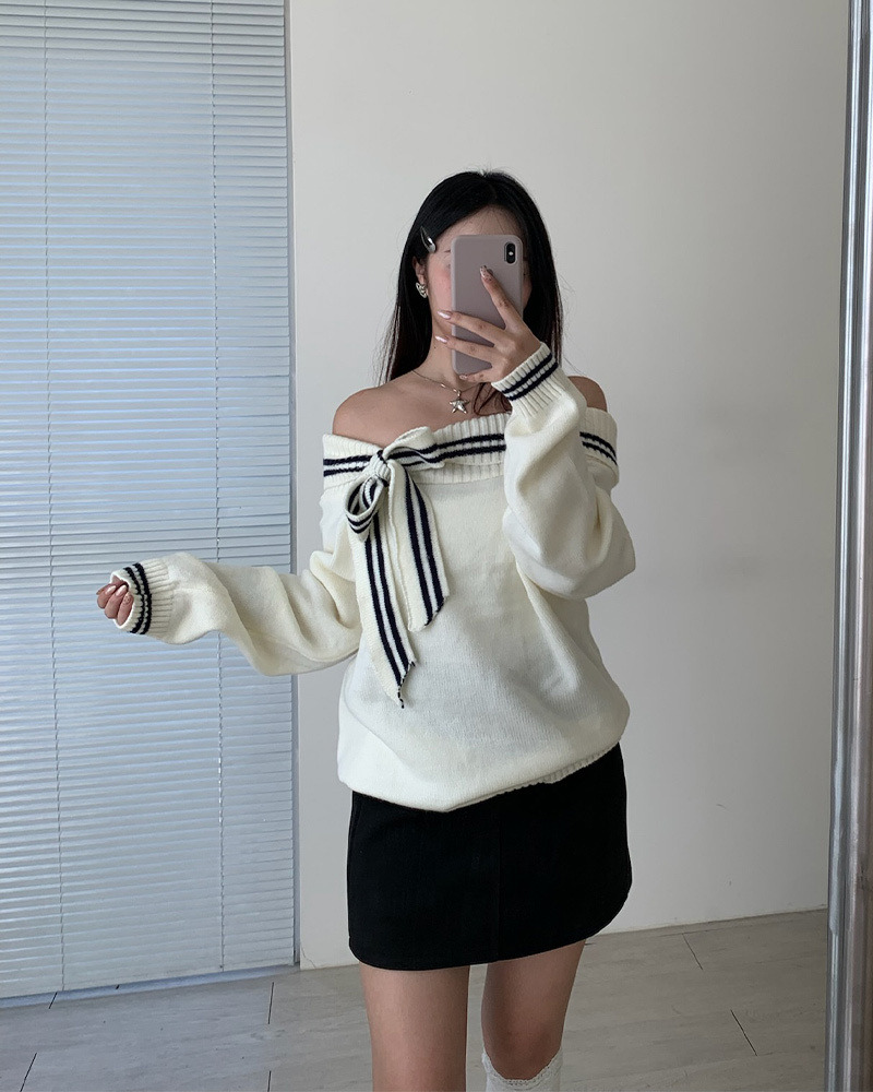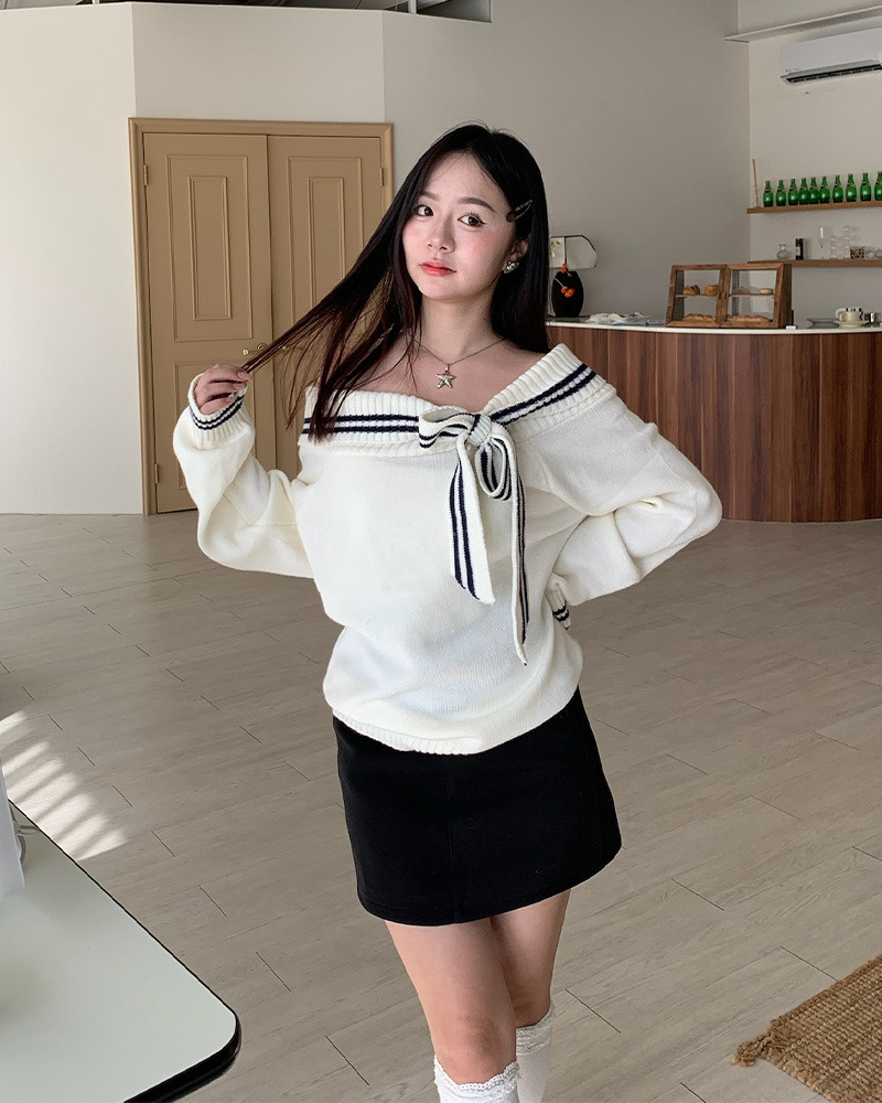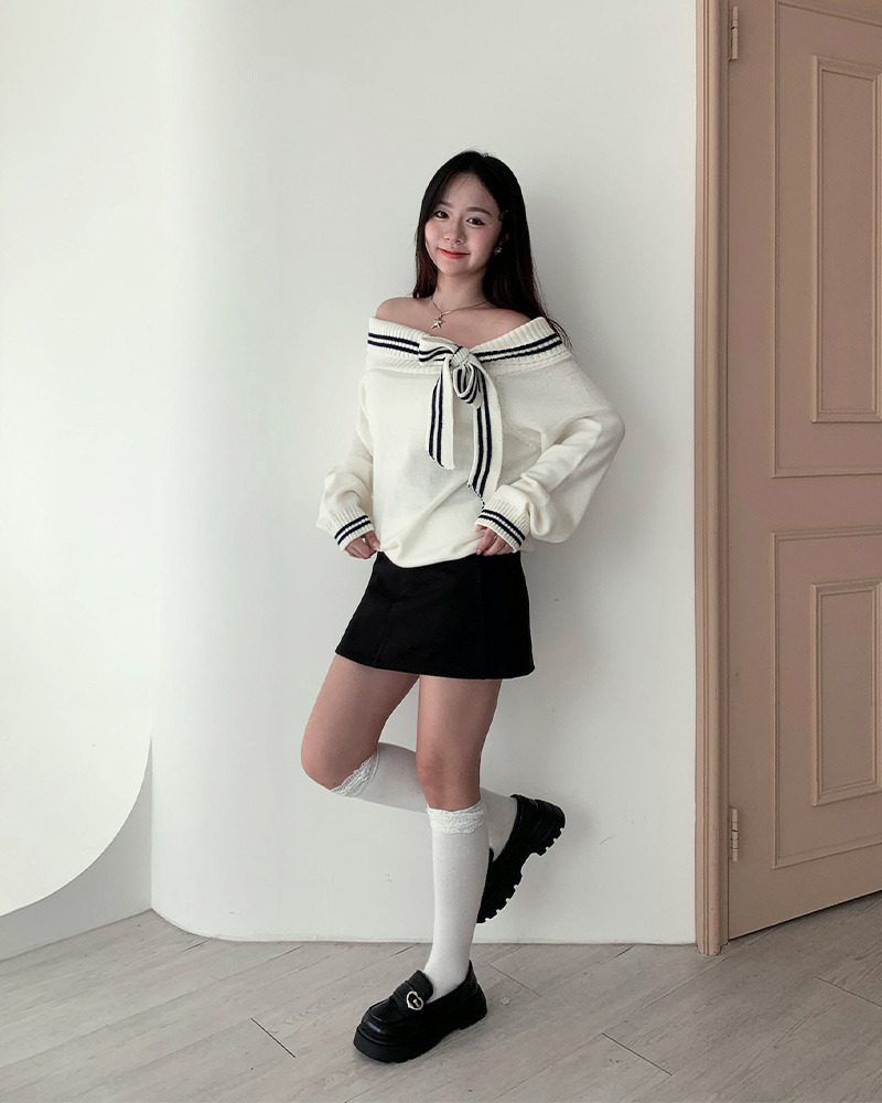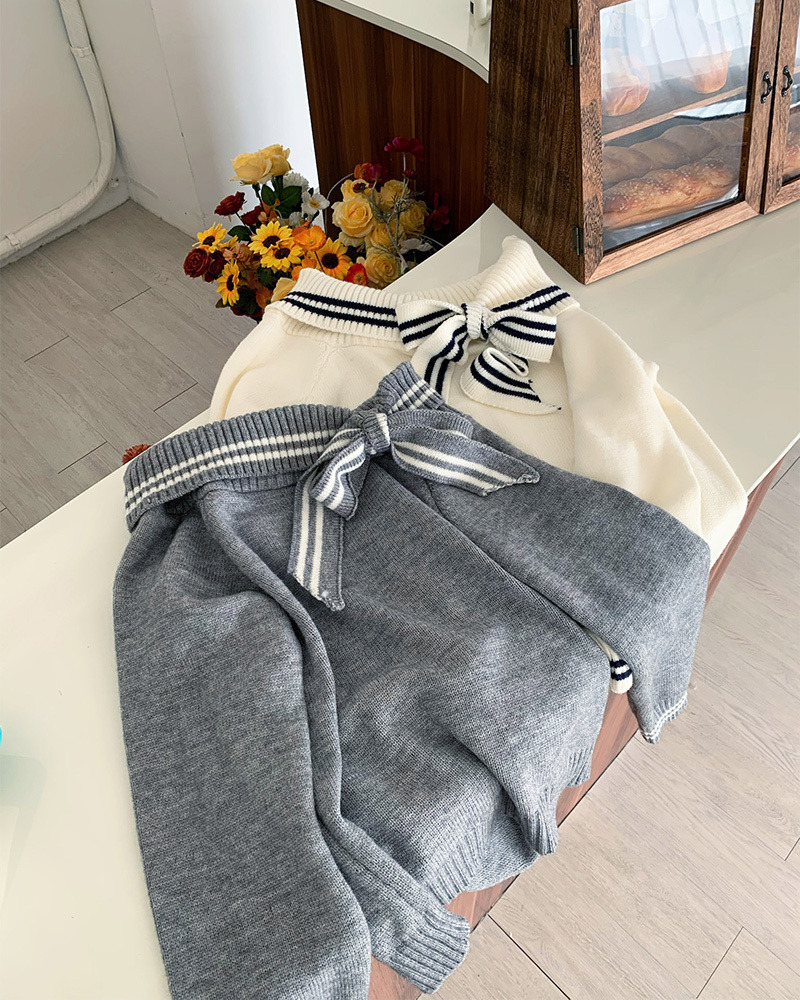 翻領毛衣配上綁帶蝴蝶結超溫柔₊˚⊹ᰔ 整件材質都是很柔軟的 不刺膚~