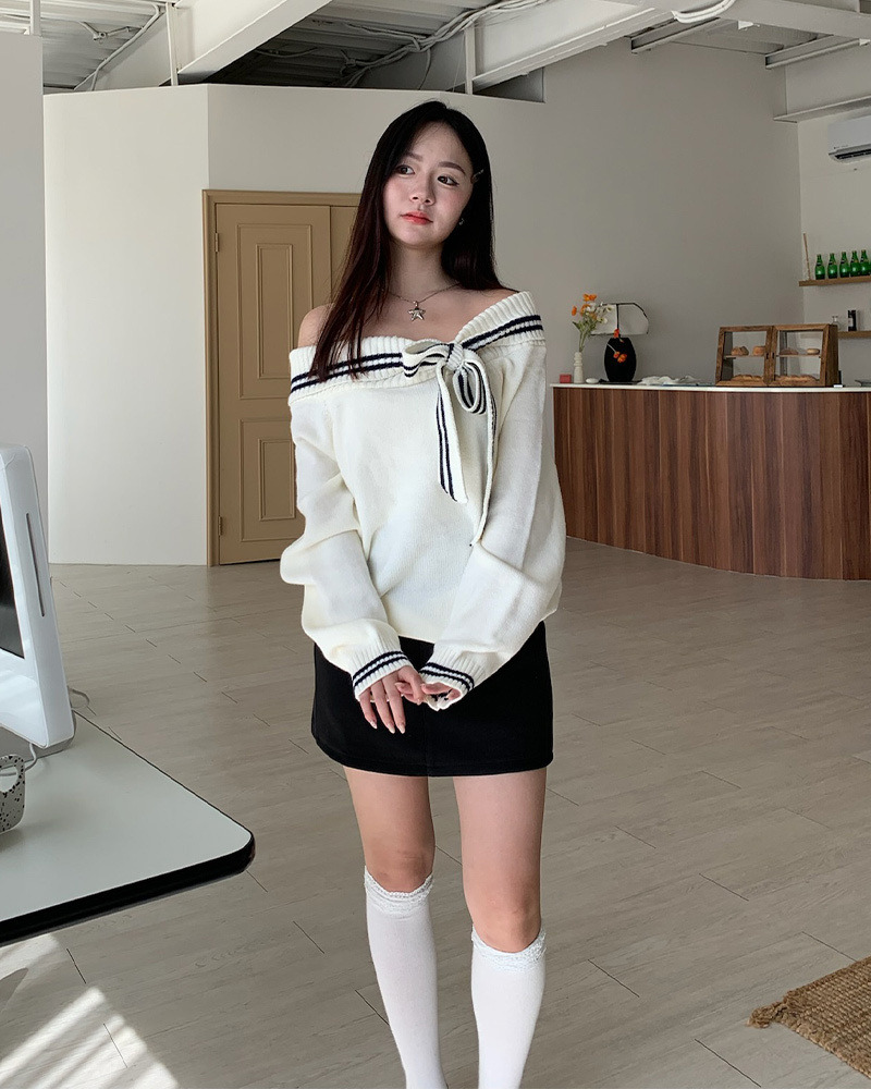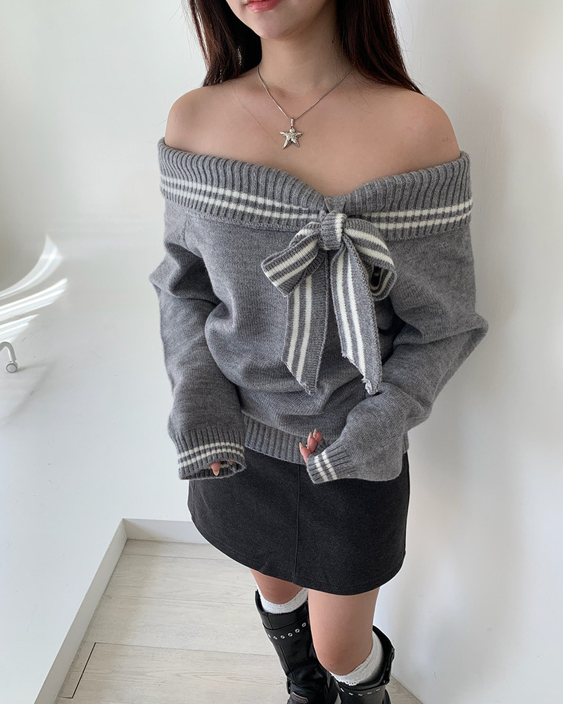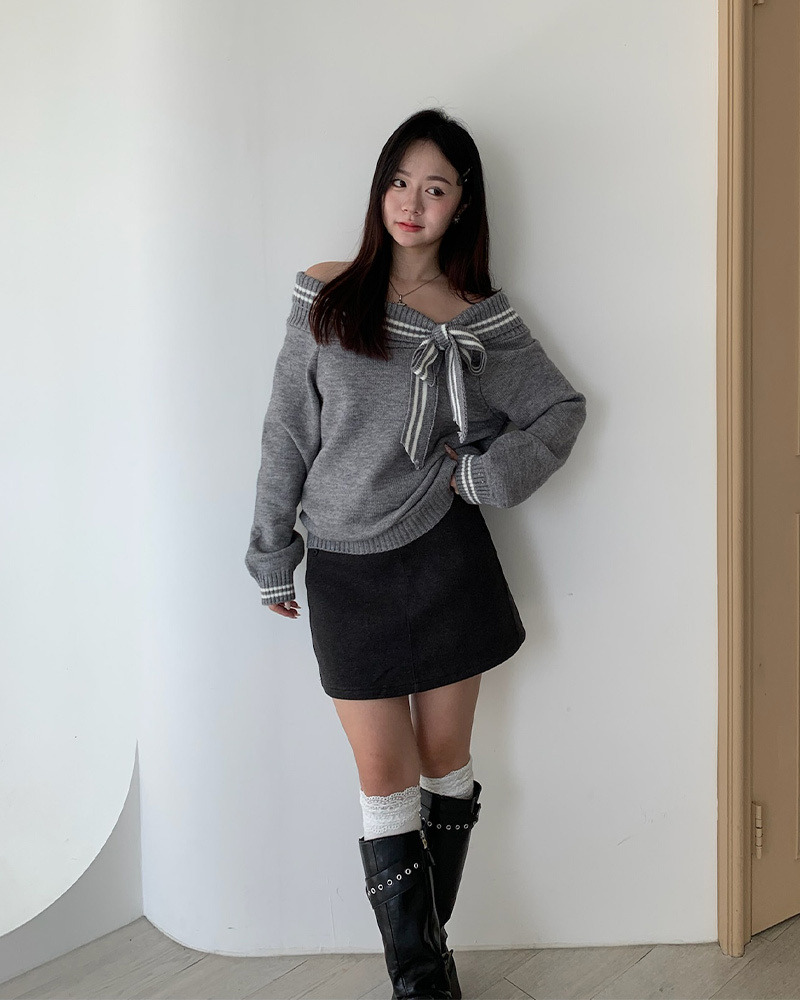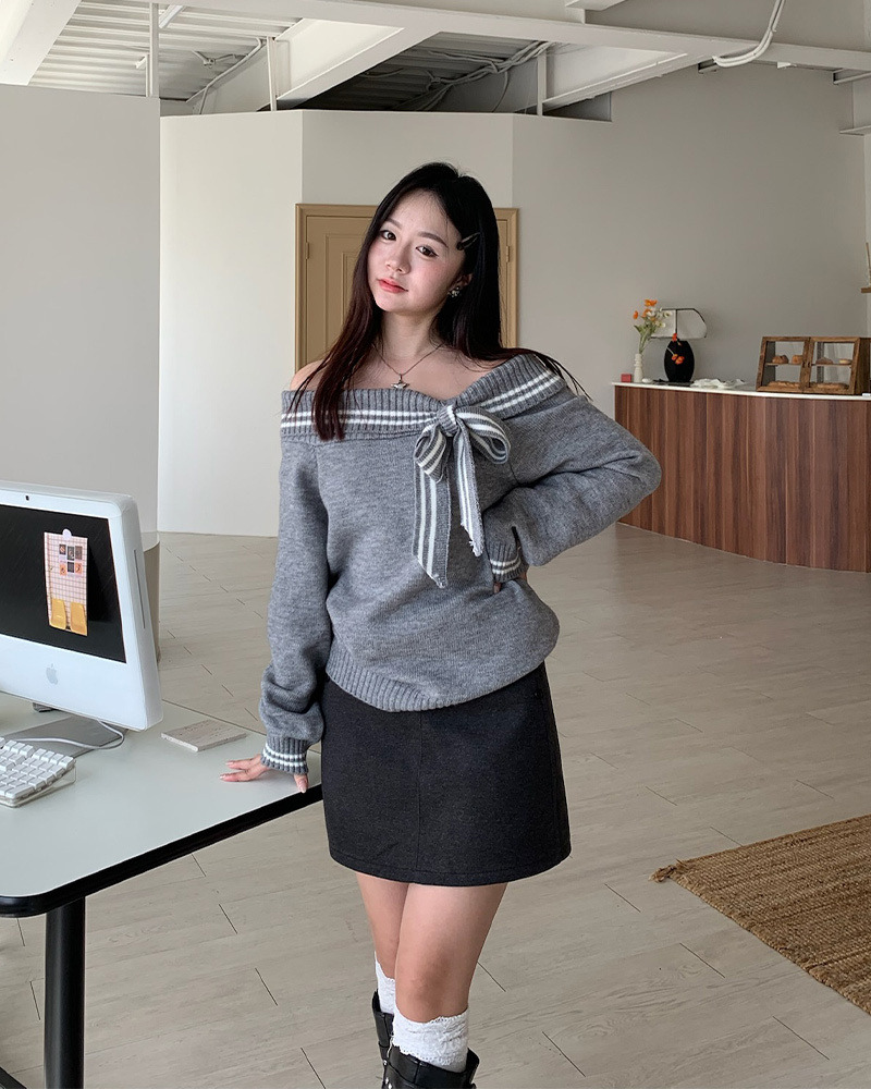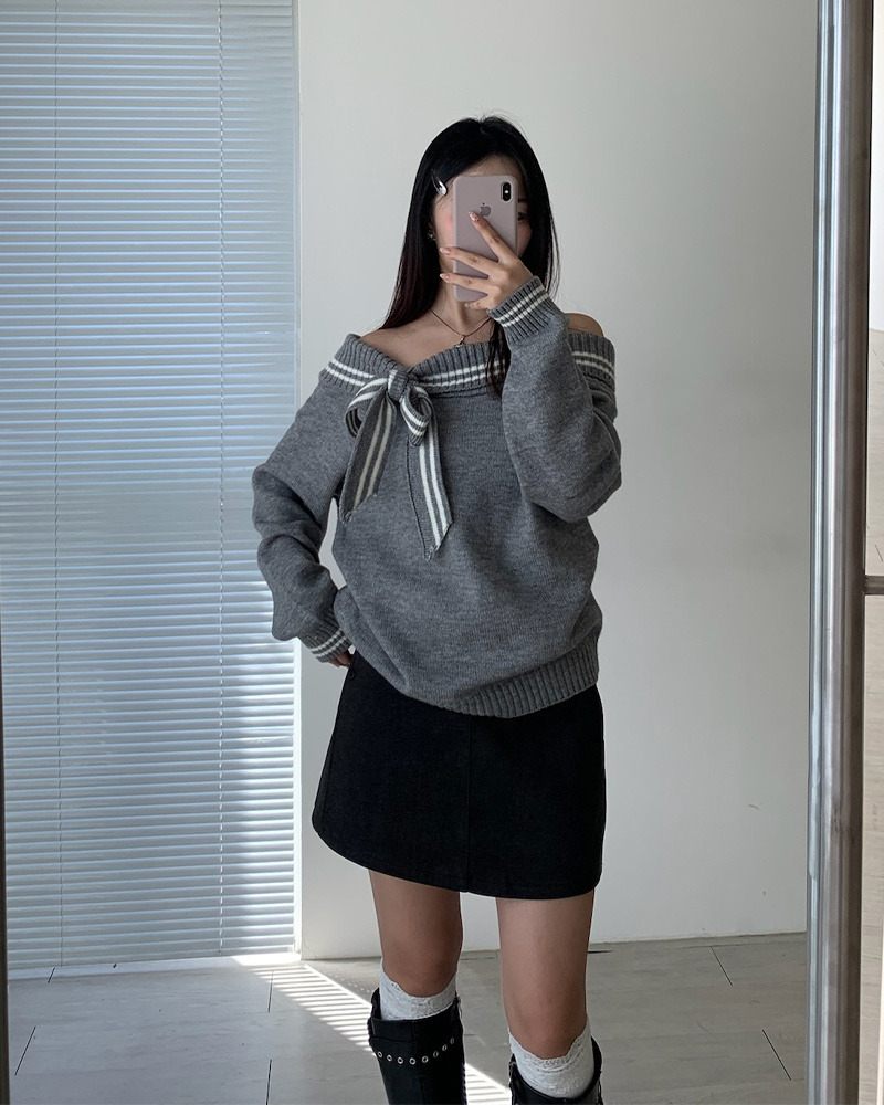 翻領毛衣配上綁帶蝴蝶結超溫柔₊˚⊹ᰔ 整件材質都是很柔軟的 不刺膚~
