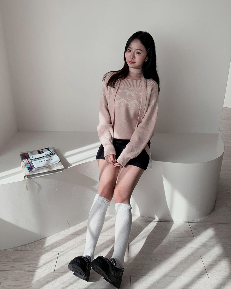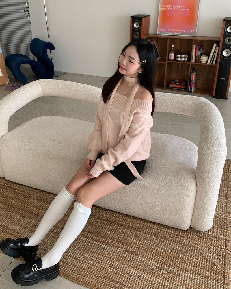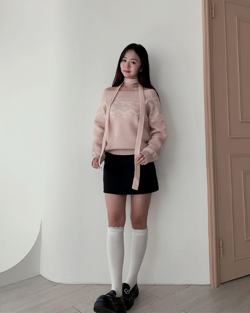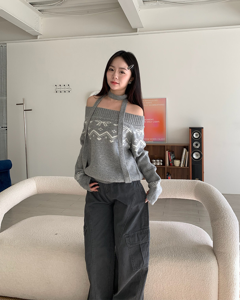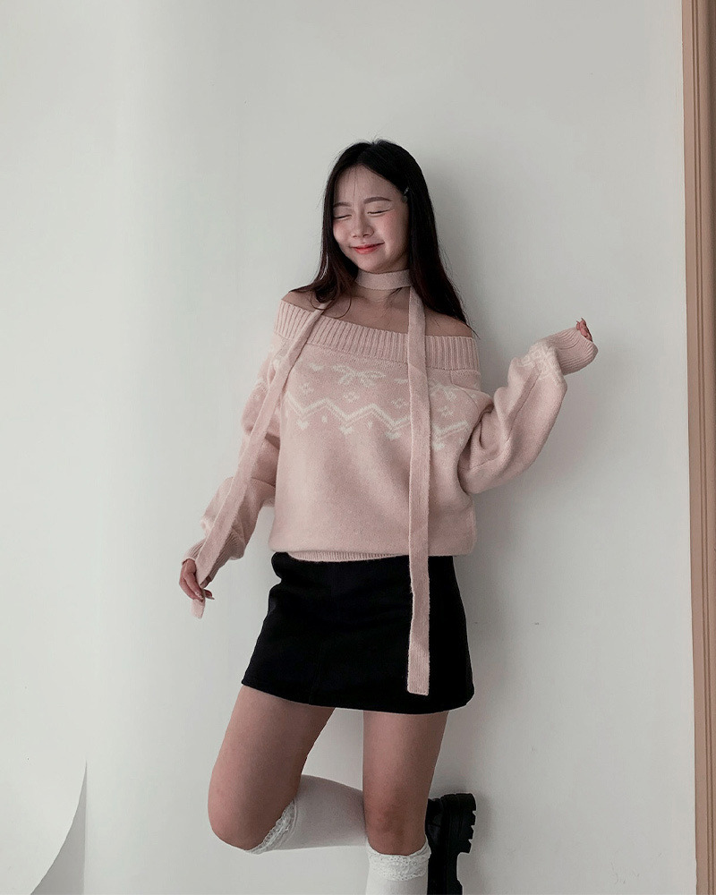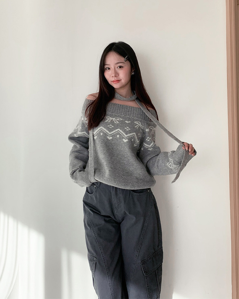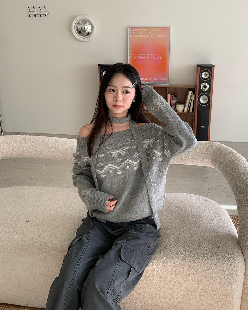 冬天也能穿得仙氣滿滿 這件就是超有冬天氛圍感的斜肩毛衣 費爾島花紋設計~像雪花灑落在肩頭-`♡´- 可以斜肩可以一字領ᝰ.ᐟ性感得毫不費力
