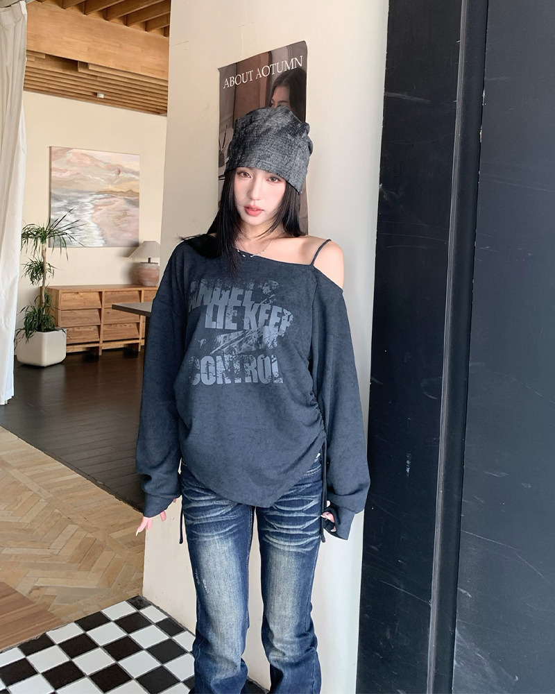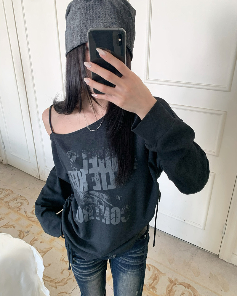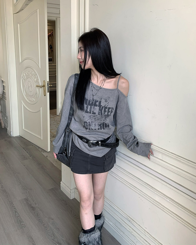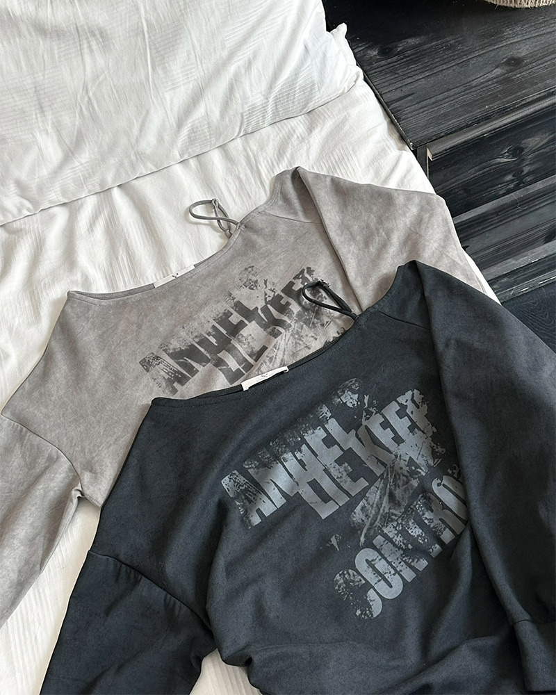 PURPLE-美式塗鴉斜肩抽繩大學TEE*2色(現貨)