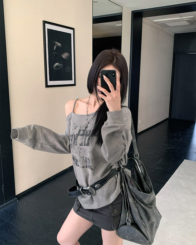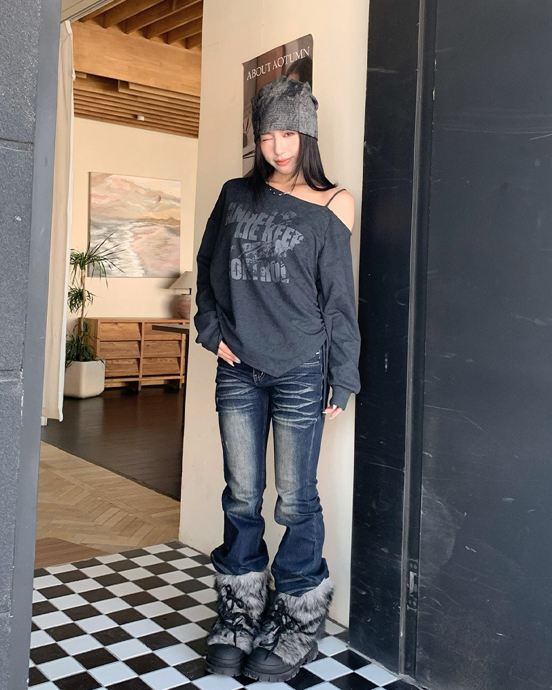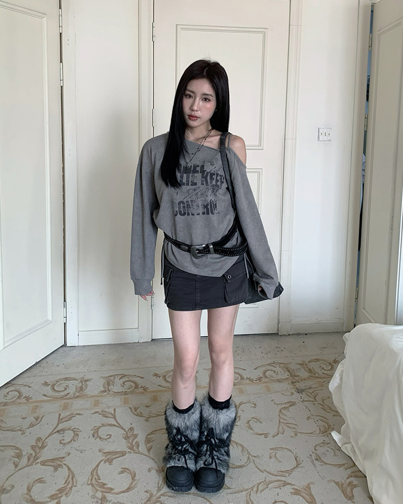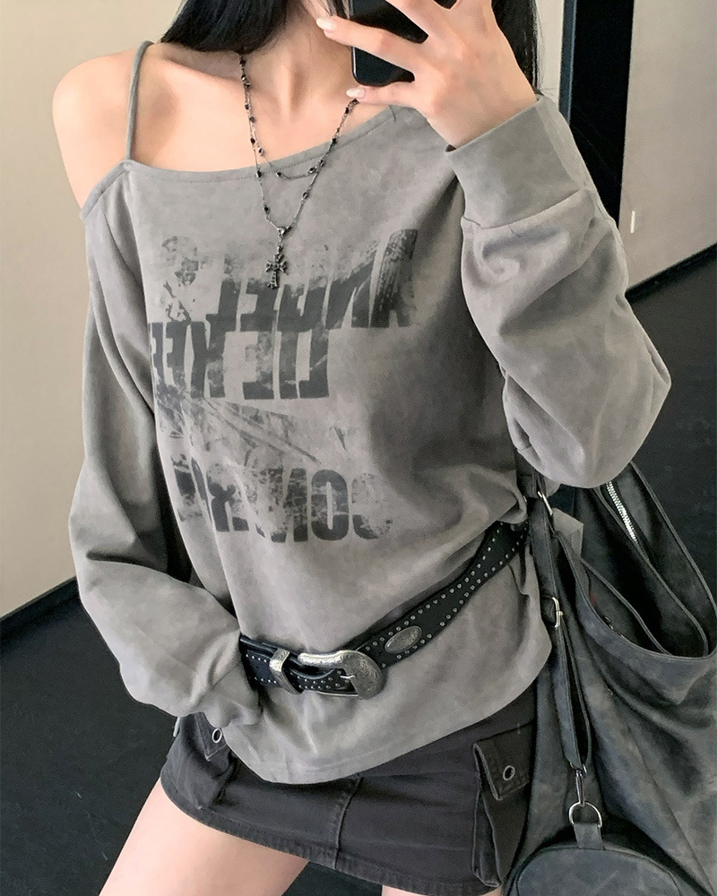 PURPLE-美式塗鴉斜肩抽繩大學TEE*2色(現貨)