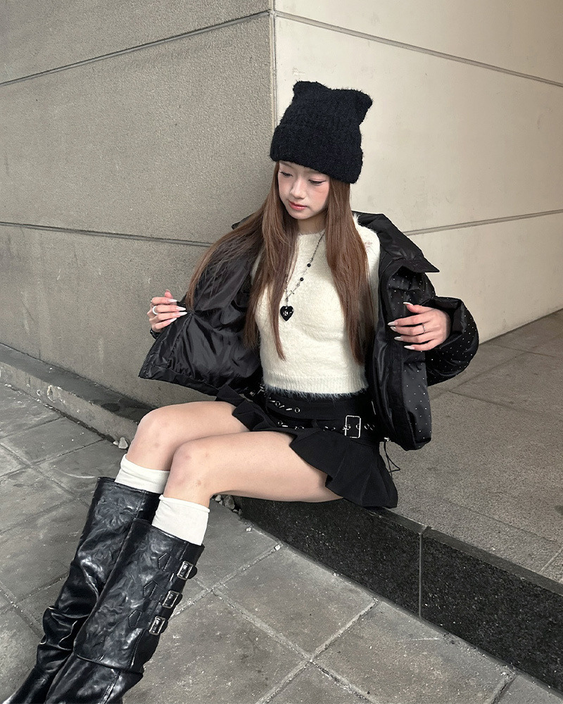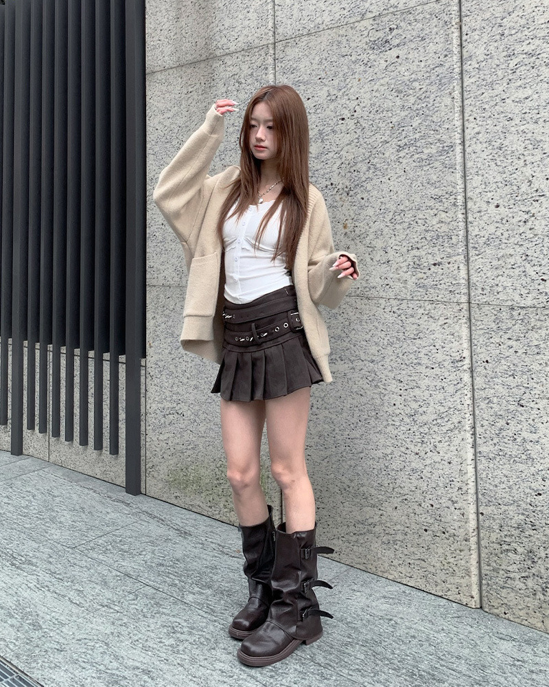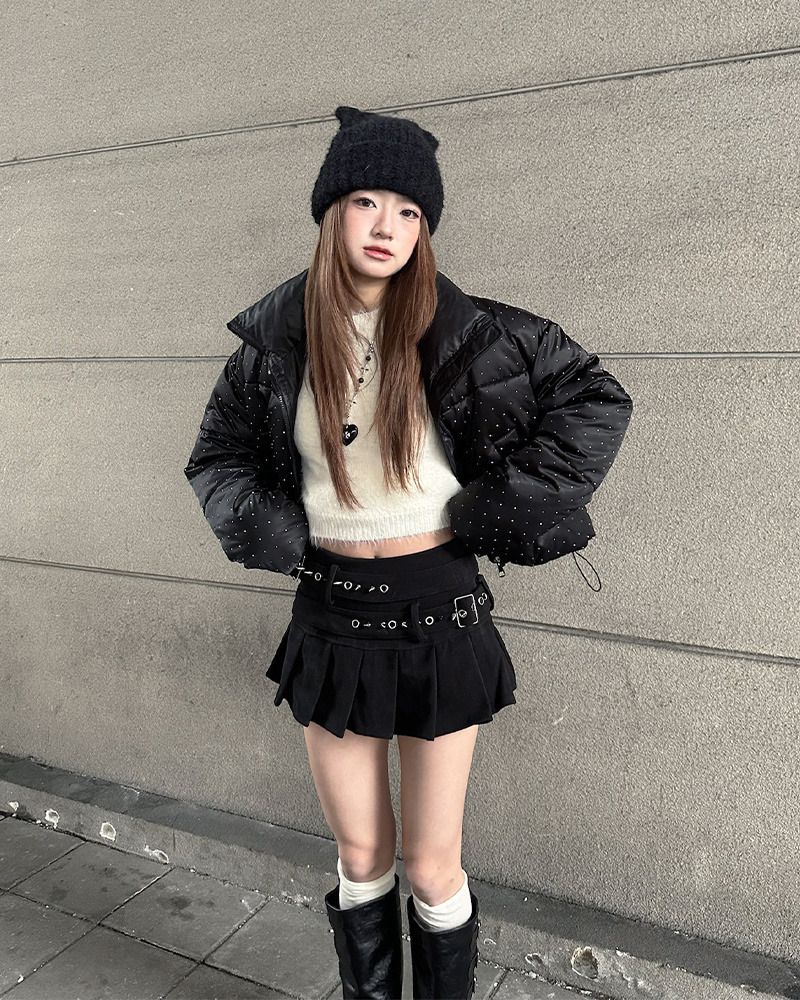微A字剪裁視覺拉長比例 特殊皮質配上不規則鉚釘 超有個性