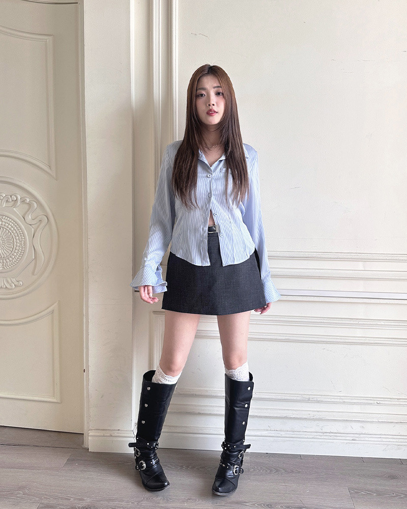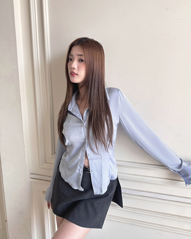 PURPLE-來件男友風 愛心刺繡條紋襯衫