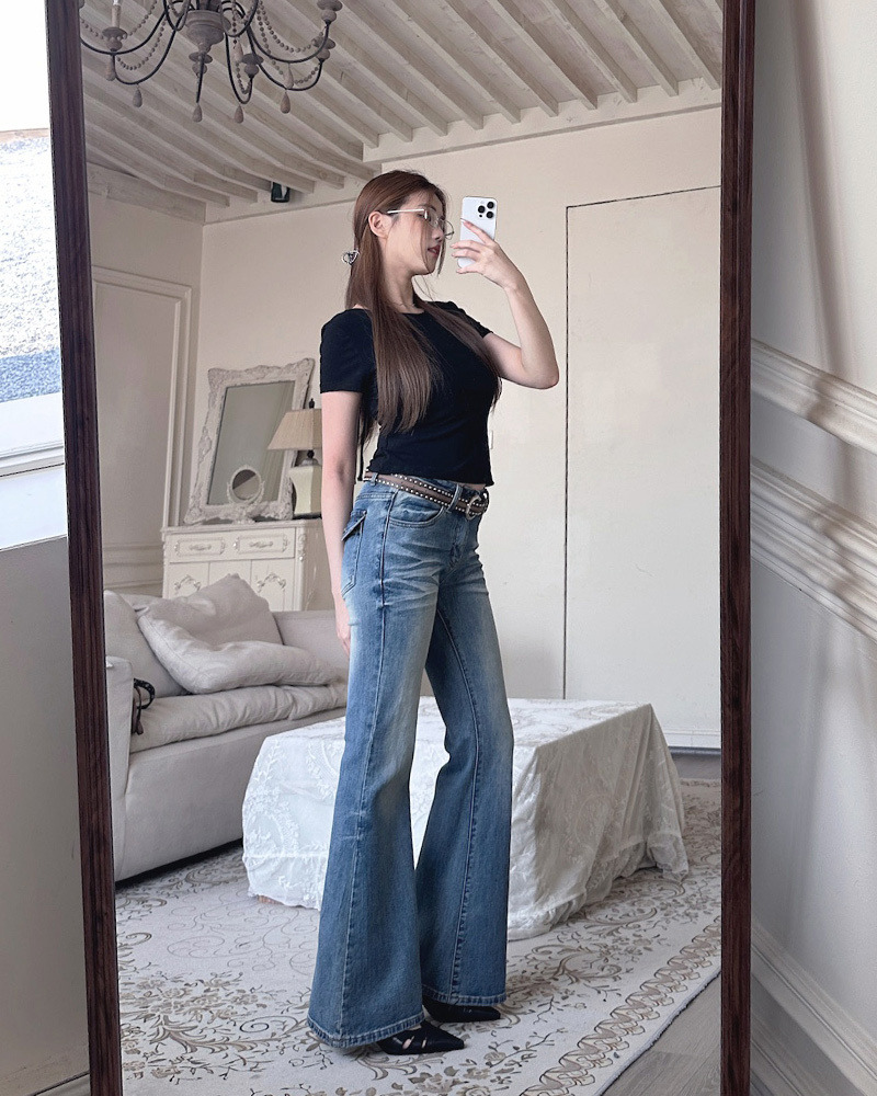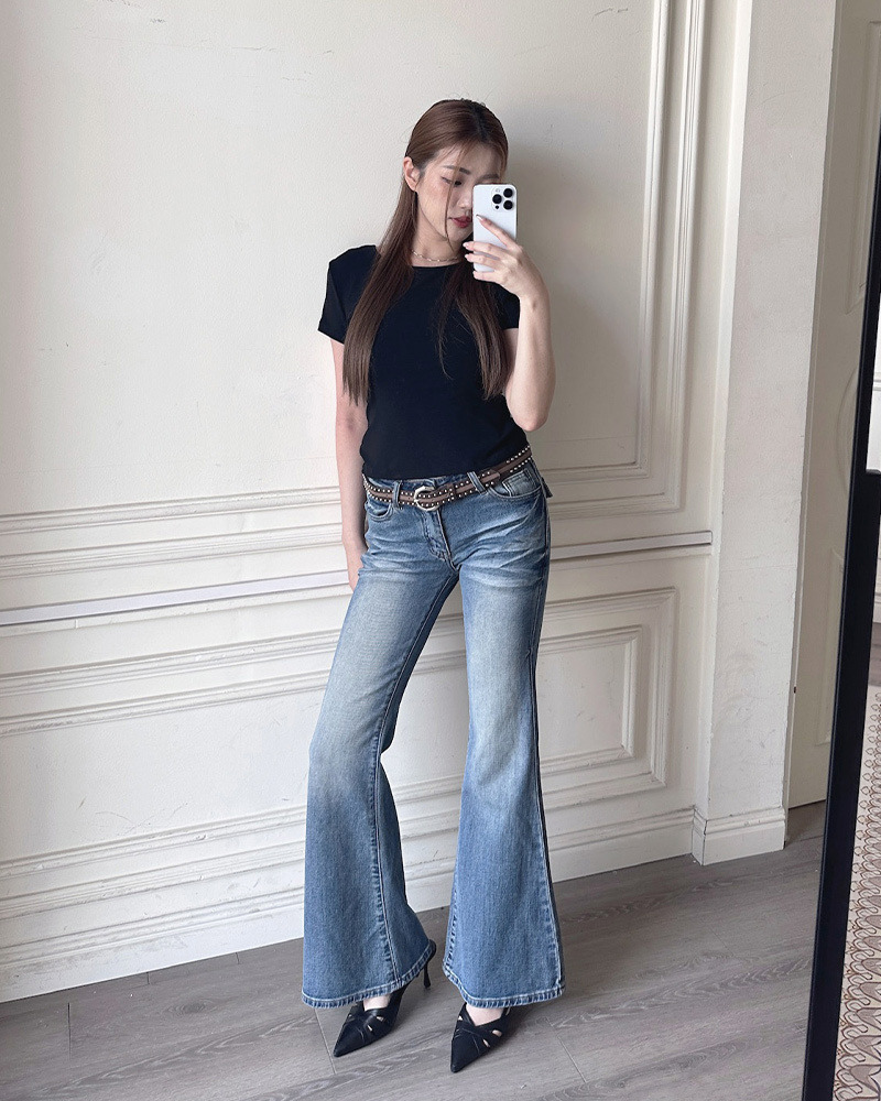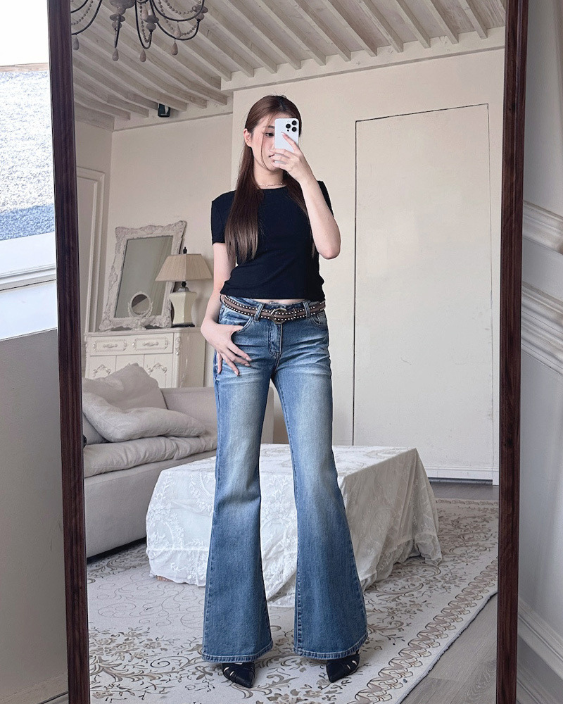 簡約復古刷色 韓系基礎必收款 穿上就有氣質的喇叭褲~ -模特尺寸 166/50 S