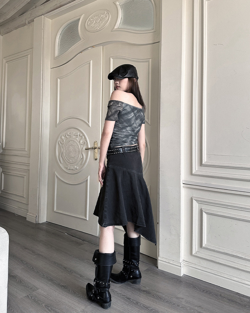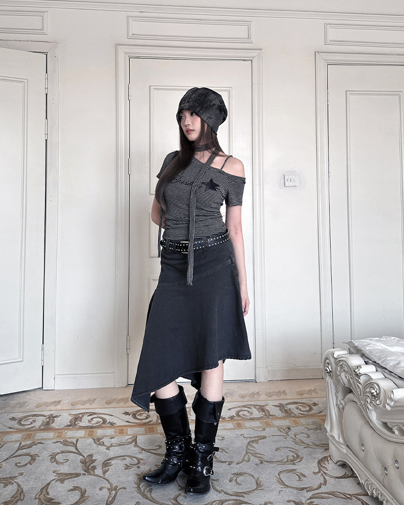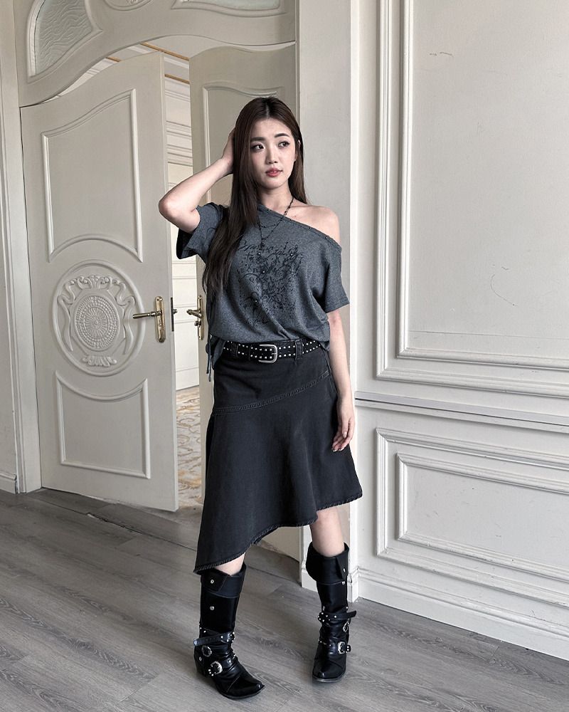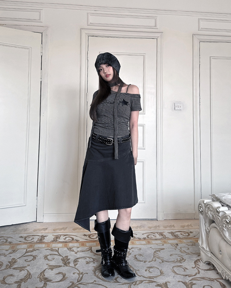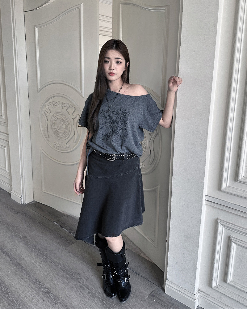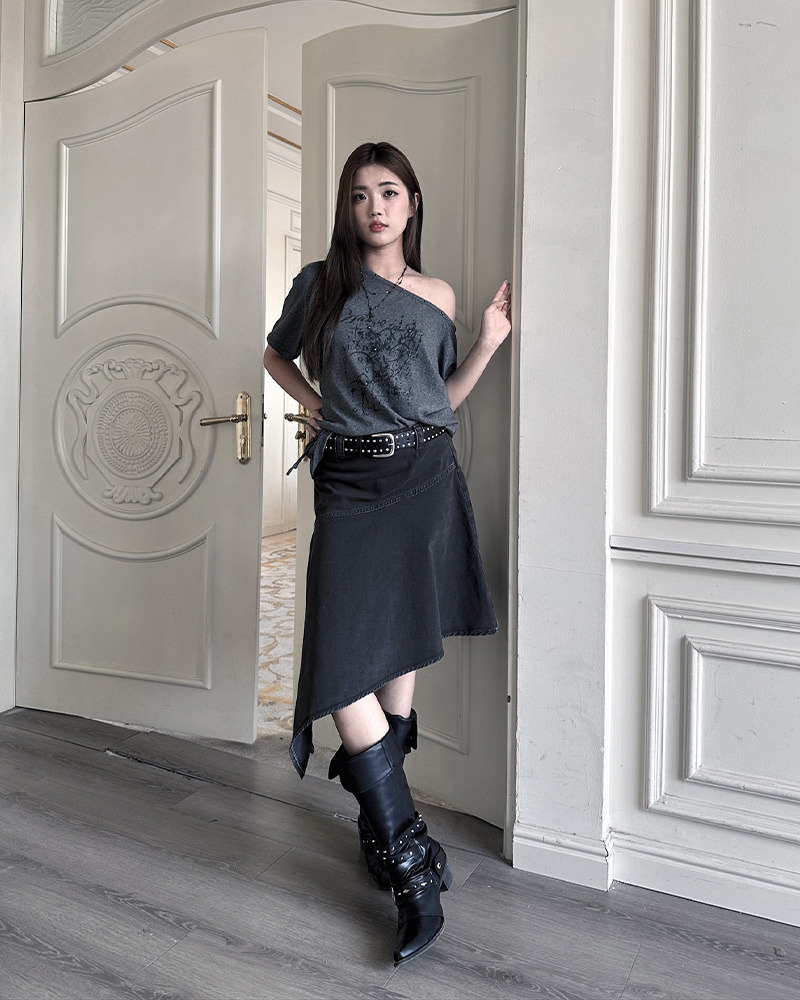 日系復古女孩心頭好 超有個性的反車線設計/斜下擺造型 走在路上完全不撞款