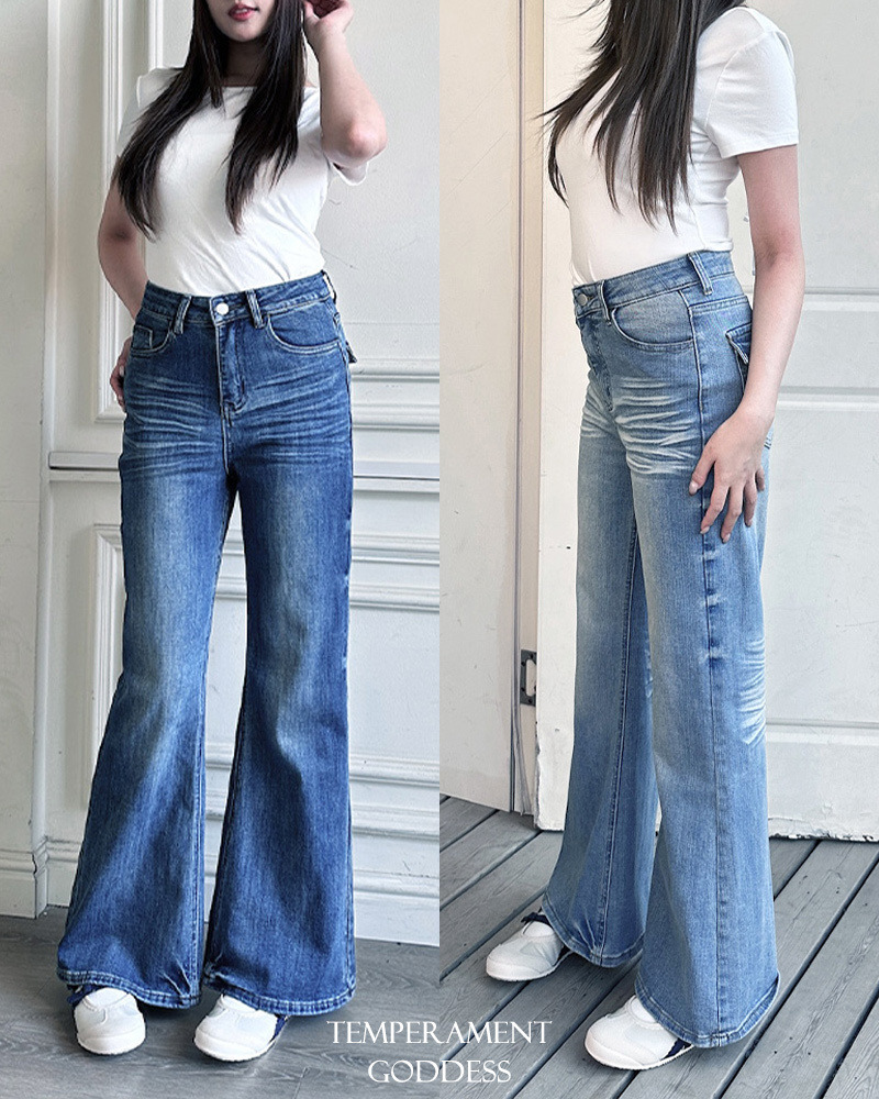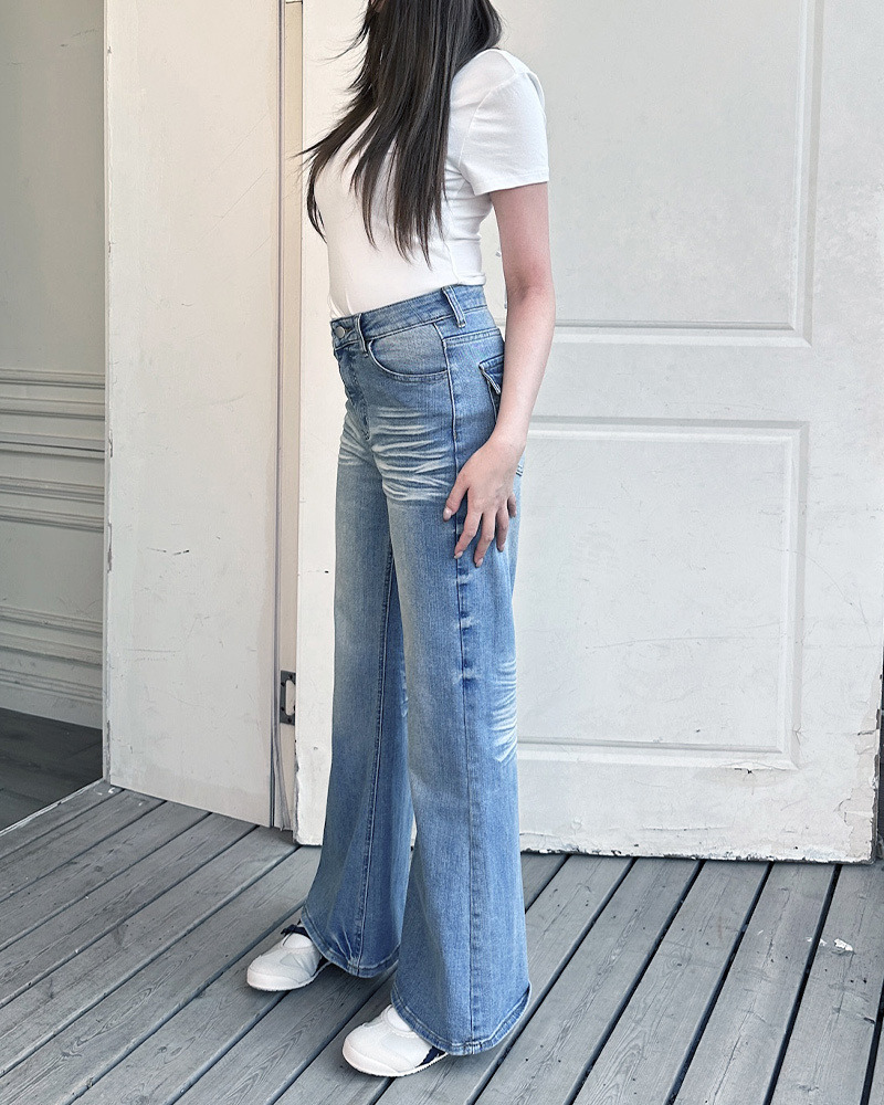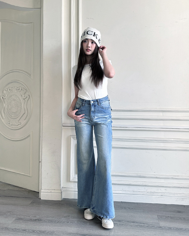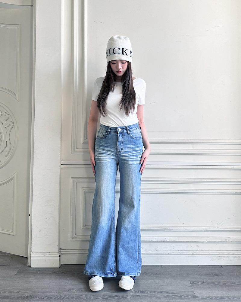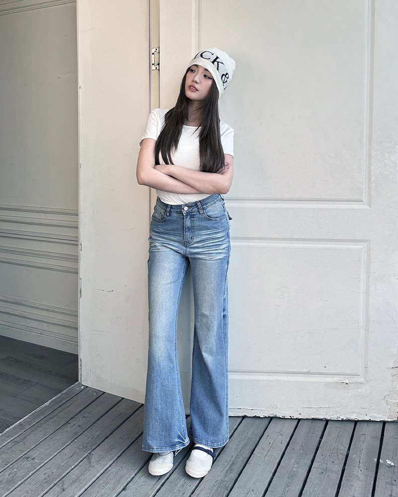 復古刷白設計 低調的辣 微喇叭褲型 各身形輕鬆駕馭
