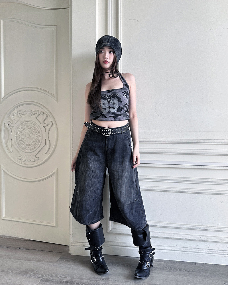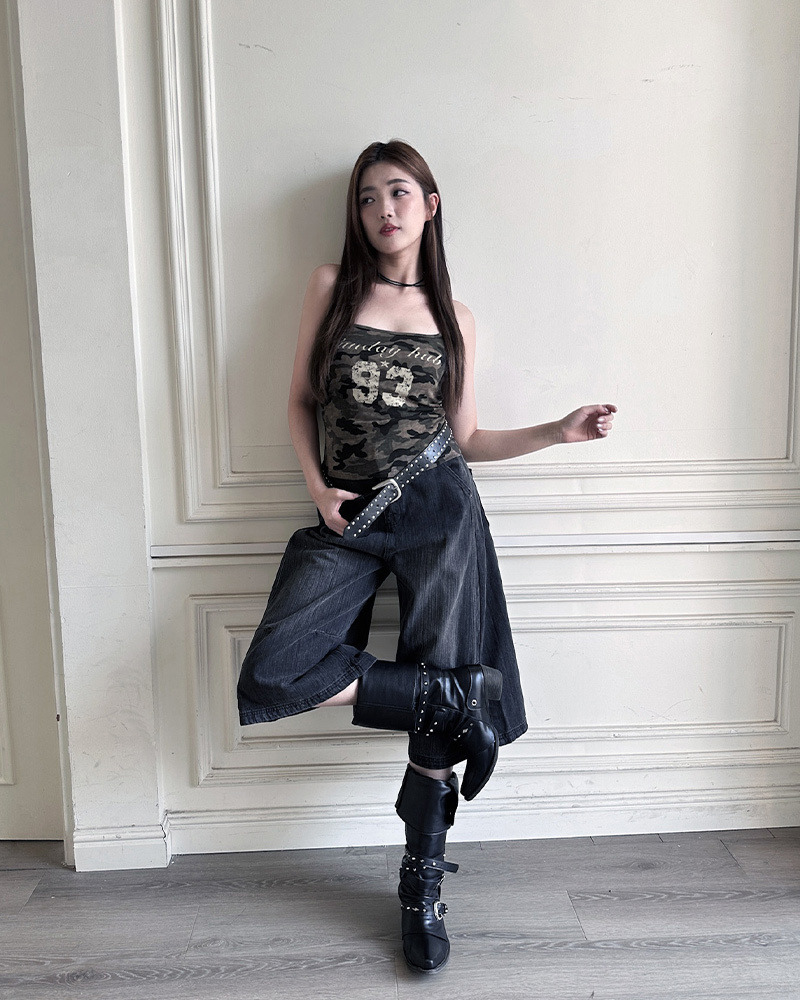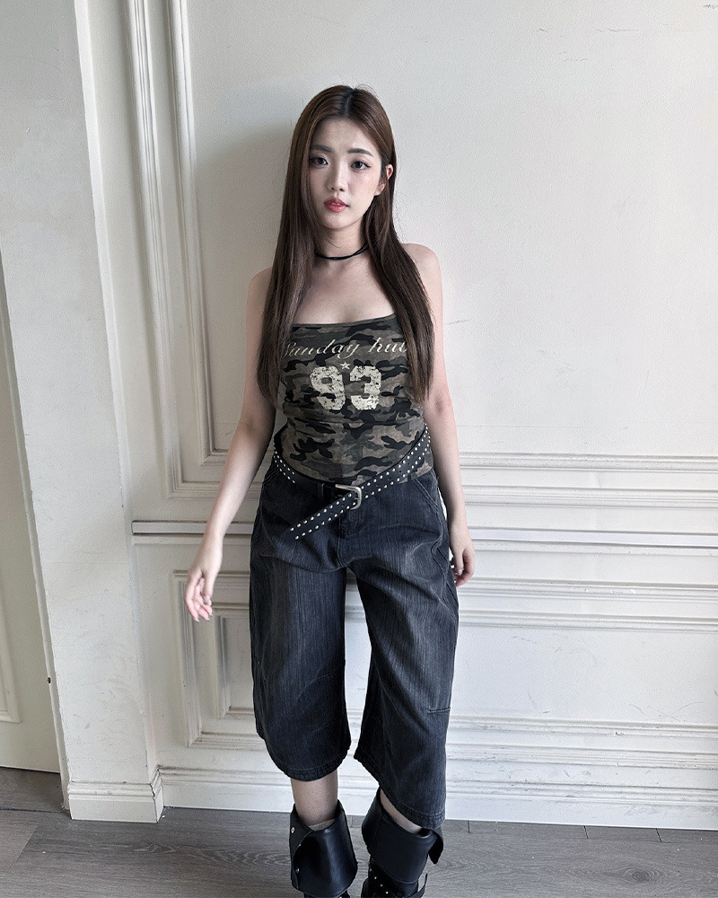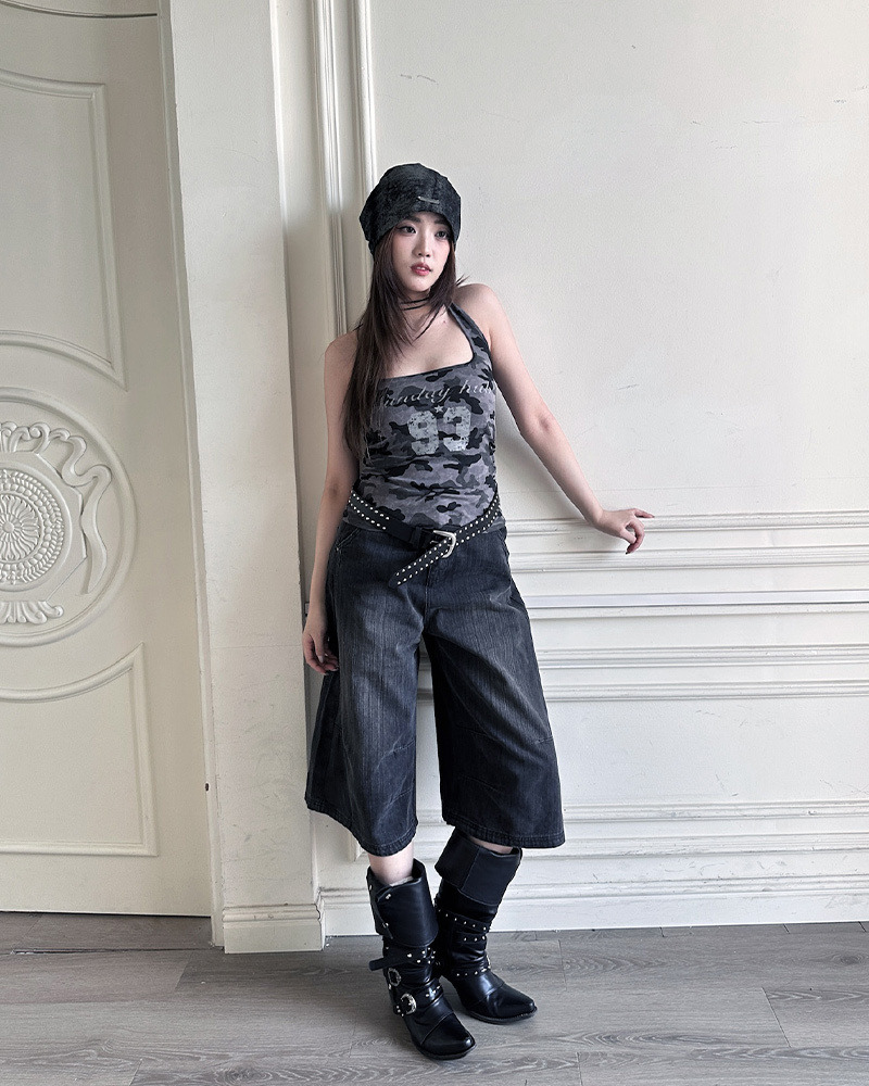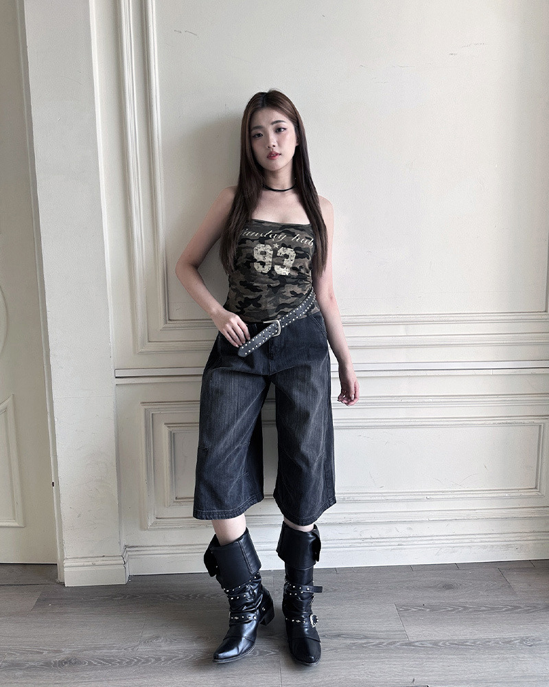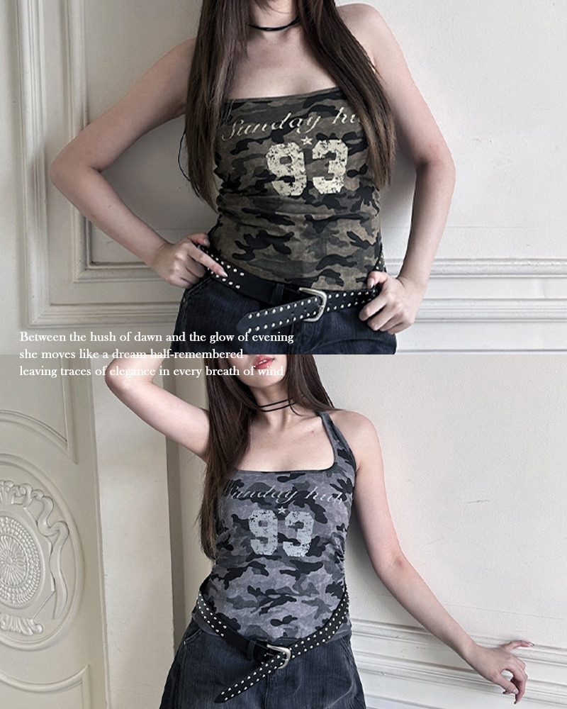 PURPLE-迷彩大U領印花背心*2色