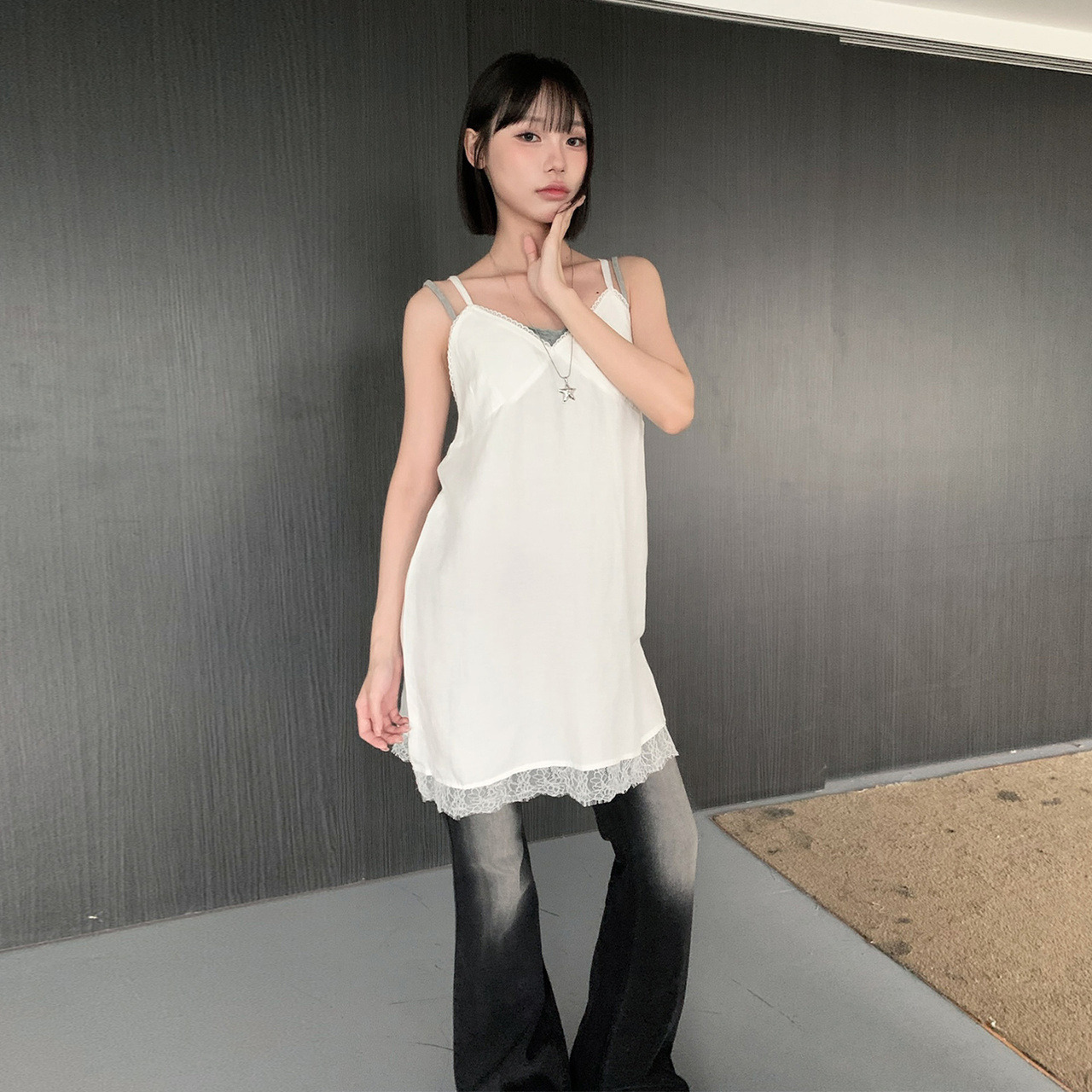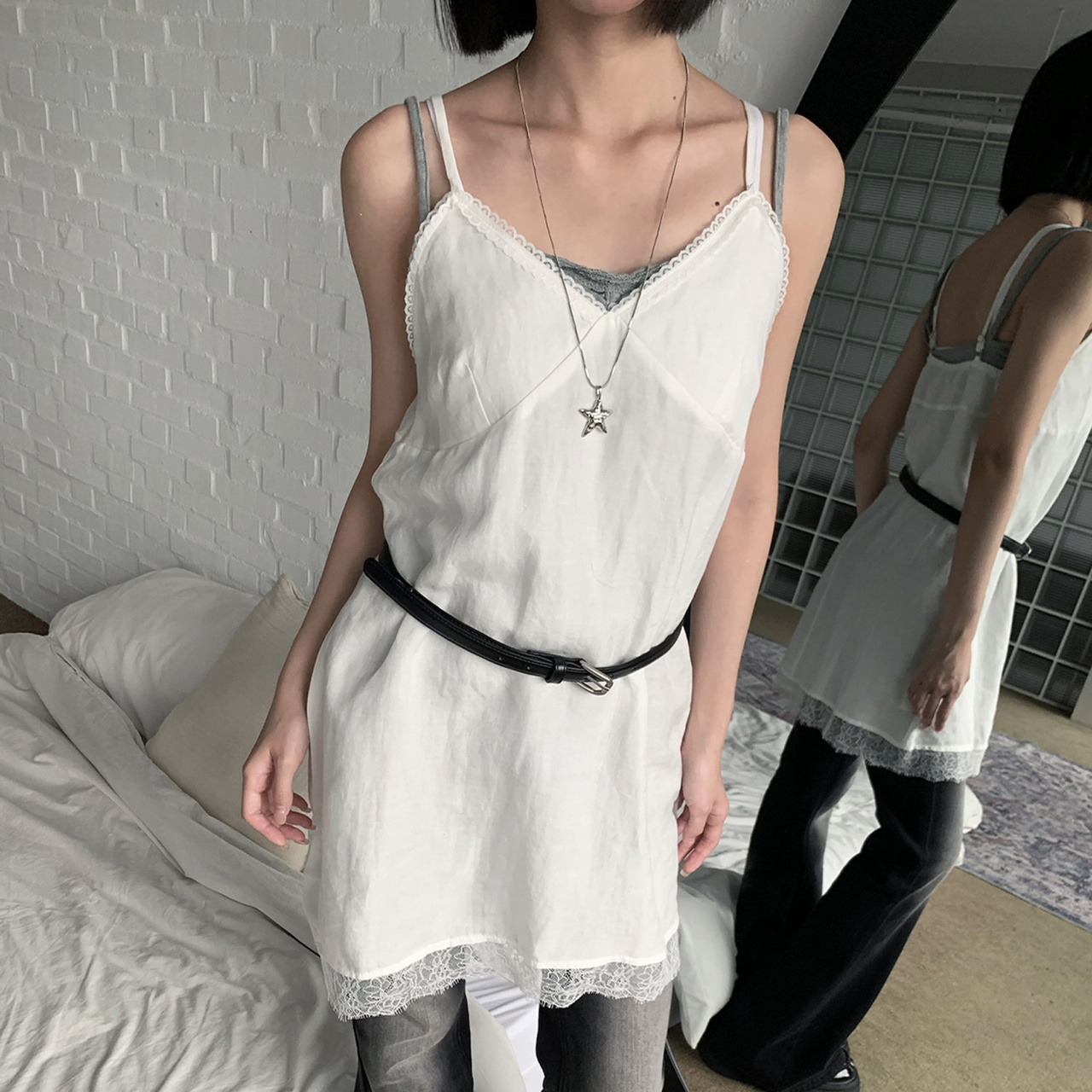 蕾絲滾邊的V領小洋裝 夏日疊搭必備款
