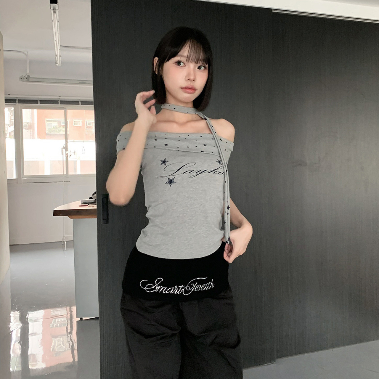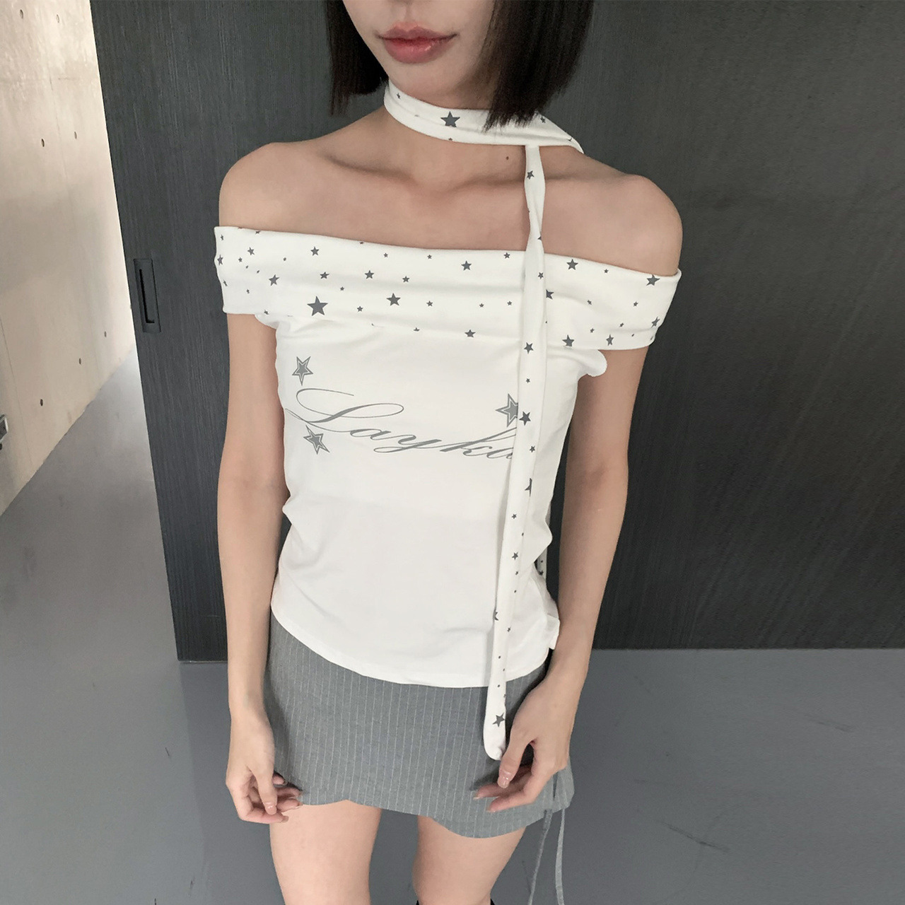 中間的星星印花配設計感花字精緻又可愛