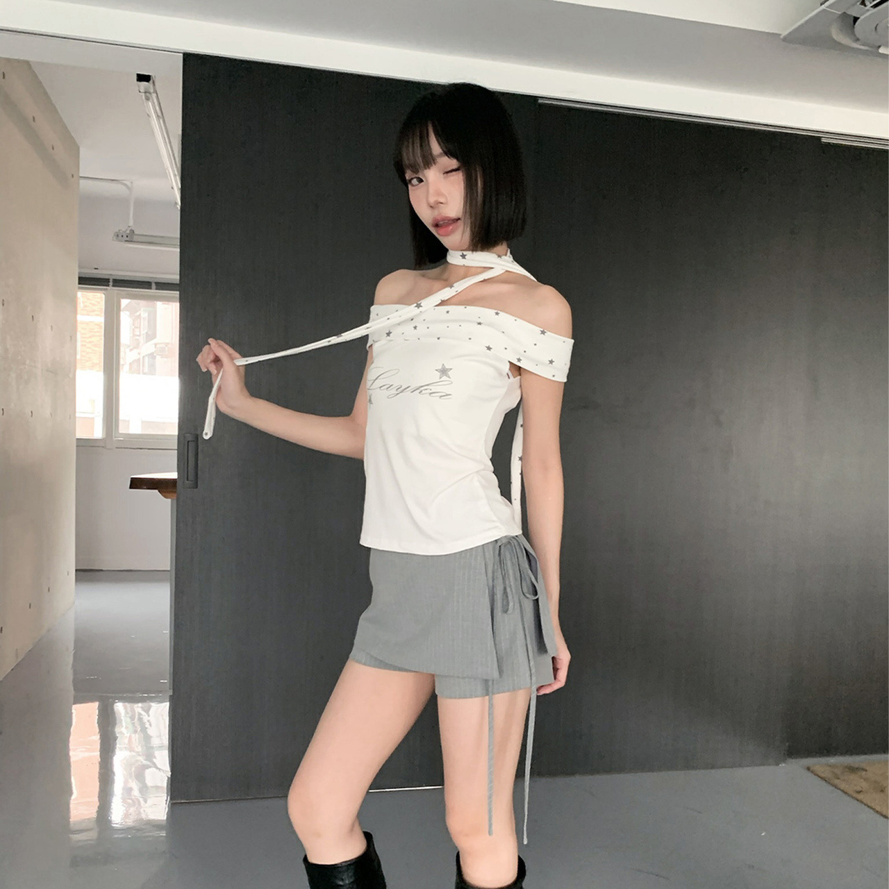 有附繞脖的芭蕾風小上衣