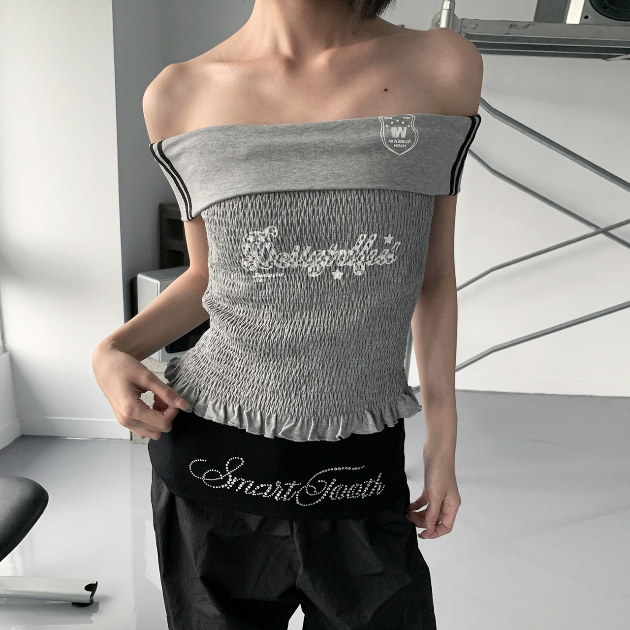 運動風和可愛的結合體 下擺木耳邊